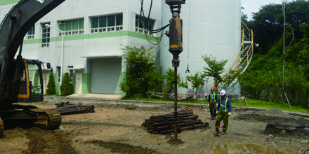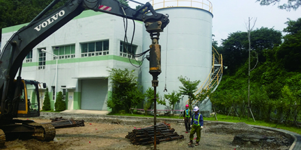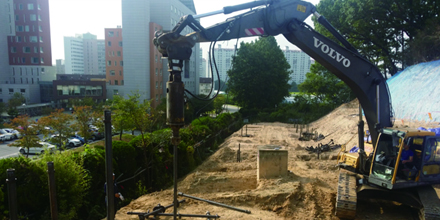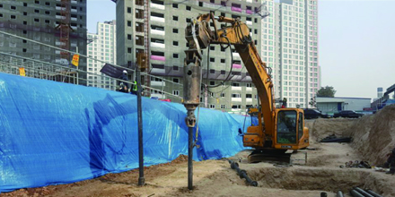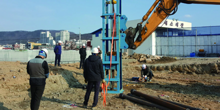 굴삭기에 전용오거를 장착, 파일의 회전 및 압입력으로 근입 시공하는 공법